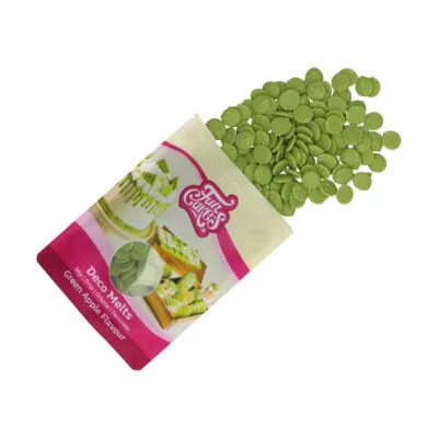 Los FunCakes Deco Melts están disponibles en muchos colores diferentes. ¿No encuentra el color exacto que busca? Cree su propio color añadiendo los geles de color FunCakes a los Deco Melts blancos. ¿Y qué hay del sabor? Probablemente lo reconocerá como chocolate. En realidad no es chocolate de verdad, pero tienen un sabor dulce y cremoso.