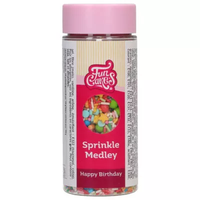 De FunCakes Sprinkle Medleys zijn de makkelijkste manier om je taarten en cupcakes om te toveren tot iets vrolijks in thema. Wij mixen en matchen de leukste strooisels telkens weer tot nieuwe sprinkle medleys. In één potje vind je daarom een combi van bijvoorbeeld suikerfiguurtjes, parels, mimosa’s, confetti, sugar strands en musketzaad. Voor elk thema hebben we wel een sprinkle medley, want we blijven te gekke combinaties vinden om jouw traktaties de perfecte finishing touch te geven. Bakt je dochter graag cupcakes met haar vriendinnen? Dan mag deze Pretty Sweet Sprinkle Medley niet ontbreken.
