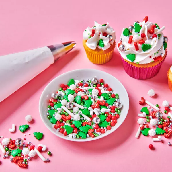 The FunCakes 3D Sprinkle Medleys are the easy way to give your baking a festive Christmas look in no time! Christmas trees, shiny pearls, stars, and cheerful 3D shapes create a warm and joyful effect. These medleys are part of our premium range, easily recognisable by the jar with the sleek purple lid. Each jar is full of surprises — from nonpareils to confetti and mini figures perfectly blended to add extra dimension to your Christmas treats. Whether you’re baking cookies, cupcakes or a holiday cake, the Christmas Wishes Medley adds a magical festive finishing touch.