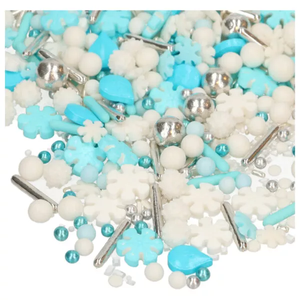 The FunCakes 3D Sprinkle Medleys are the easy way to give your baking an elegant and frosty winter look in no time! Icy blue tones, delicate snowflakes, shiny pearls, and wintry 3D shapes create a cool and magical effect. These medleys are part of our premium range, easily recognisable by the jar with the sleek purple lid. Each jar is full of surprises from nonpareils to confetti and mini figures, perfectly blended to add extra dimension to your winter treats. Whether you’re baking for the holidays or a Frozen-themed party, the Frosty Winters Medley adds a sparkling icy finishing touch.