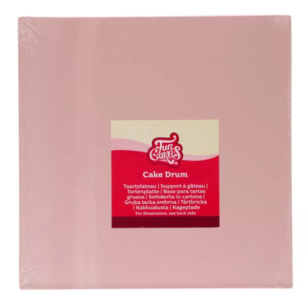 The Cake Drum of FunCakes can be used as a handy base plate for presenting your cake. The cake drum Pastel Pink is of sturdy quality and has a luxurious appearance. With normal use, the drum can be used several times. The drum has a thickness of 12 mm and is available in different shapes, sizes and colours. Looking for a thinner version? Then take a look at our Cake Boards.